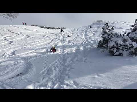 Encore une fois la neige nous a tenté lors de la visite du site olympique. En faisant le tour du lac nous avons vécu l'aventure de la Grande descente.